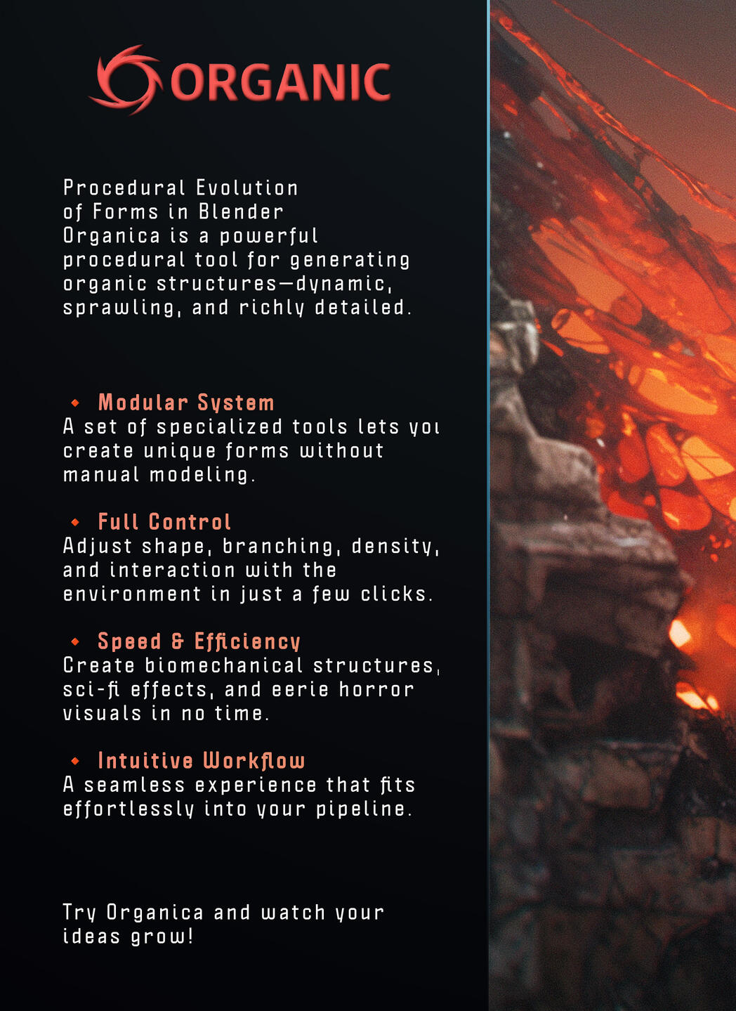 A procedural and automatic system for generating organic forms in Blender. Create dynamic structures that adapt to any scene!